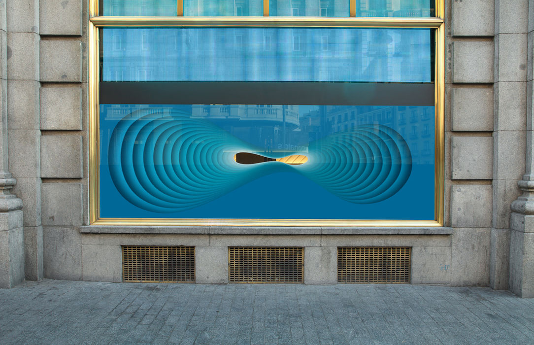 We simulated tunnels that gave a glimpse of the interior of the store creating a perspective through die-cut wooden panels at different depths, increasing the effect through the gradient of corporate colors. To give rhythm to the four shop windows, different geometries were used.